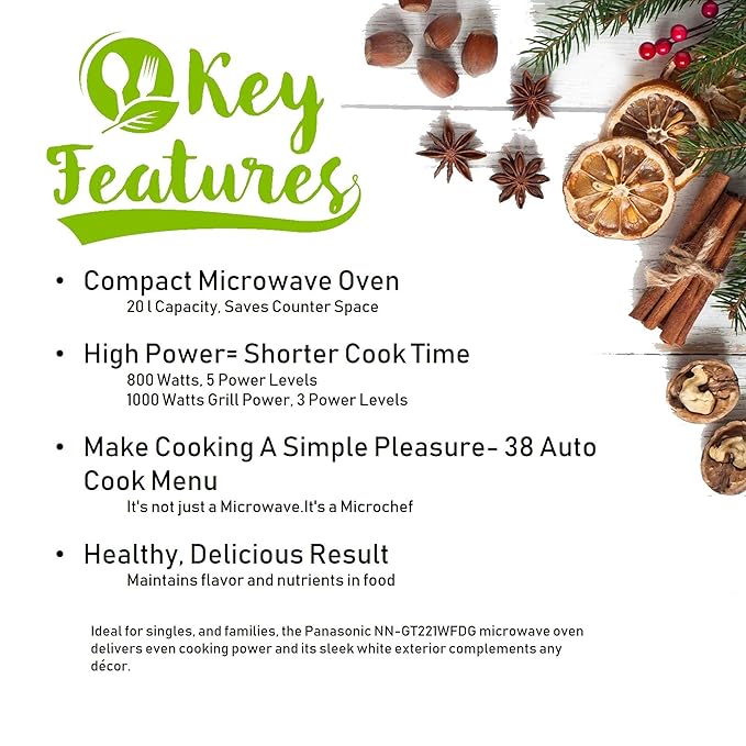 Panasonic 20L Grill Microwave Oven(NN-GT221WFDG,White, 38 Auto Cook Menus )